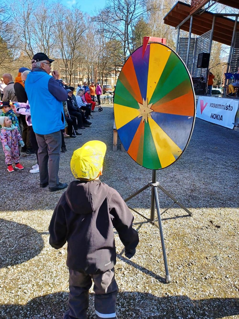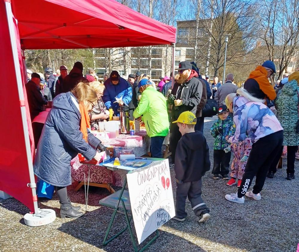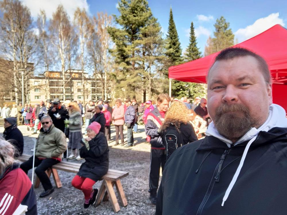 Nokian Vasemmisto juhlisti vappua Poutunpuistossa tarjoamalla juhlaväelle eduskuntavaalien kiitoskahvit. Väkeä oli liikkeellä runsaasti: ohjelmassa oli puheita, musiikkia sekä onnenpyörä, jossa jokainen pyöräytys antoi voiton.